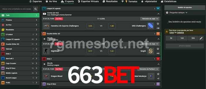 O 663bet oferece uma grande seleção de opções de apostas em e-sports com probabilidades competitivas